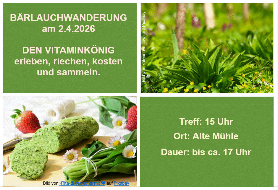 Wir starten am 27. Februar um 14:30 Uhr mit dem Kaffeetrinken in der Alten Mรผhle.